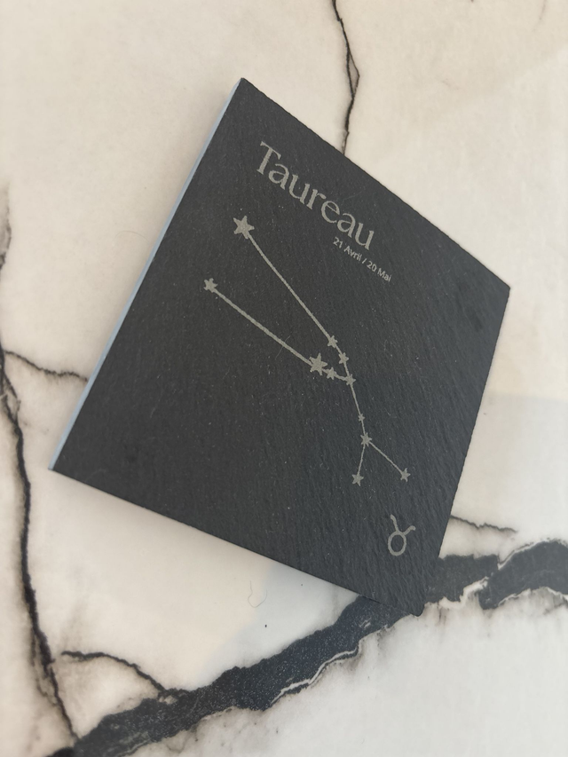 Découvrez notre collection de dessous de verre en ardoise gravée, dédiée aux 12 constellations du zodiaque, chacune proposée séparément pour correspondre parfaitement à votre signe astrologique. Chaque pièce est soigneusement gravée pour révéler la constellation associée à son signe, accompagnée de son nom, pour un rendu à la fois raffiné, intemporel et chargé de sens.